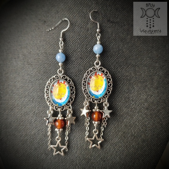 Kolczyki The Lovers słońce księżyc celestial jadeit karneol gwiazdy