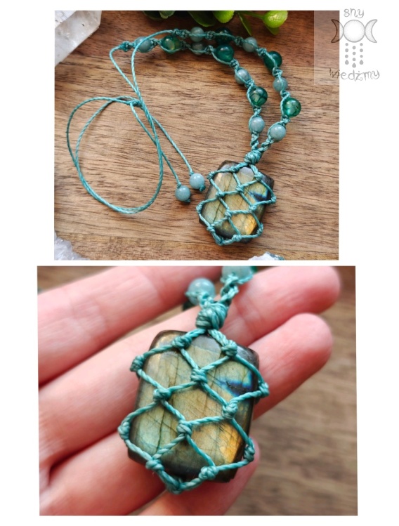 Makramowy naszyjnik Labradoryt jadeit Agat smoczy makrama