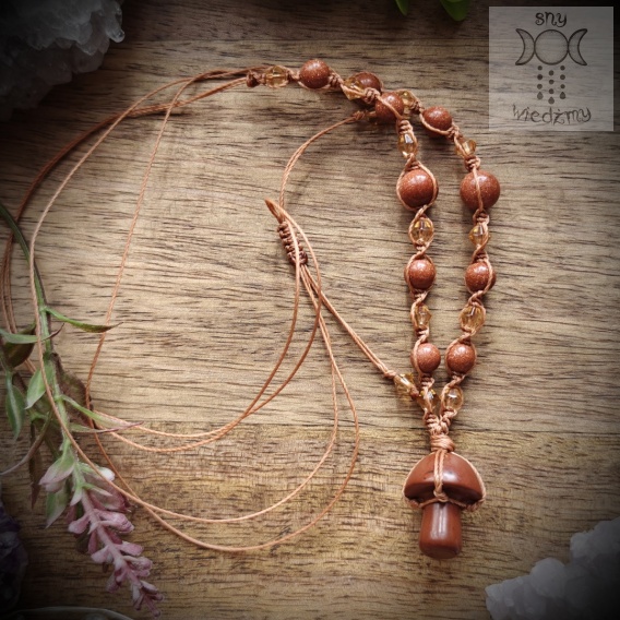 Naszyjnik Grzybek obsydian mahoniowy piasek pustyni