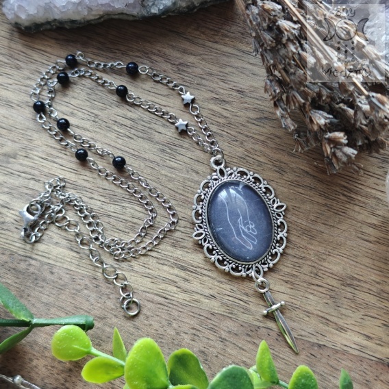 • Naszyjnik Sword & Hand medalion noc kairu hematyt stal gwiazdy sztylet