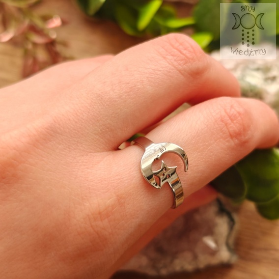 Pierścionek Moon & Star stal regulowany księżyc gwiazdka gwiazda