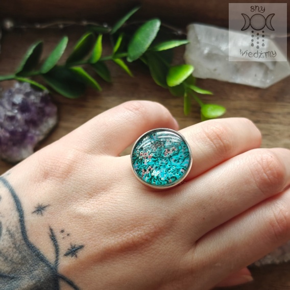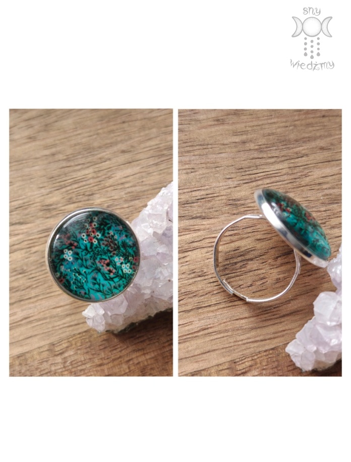 Pierścionek Na łące kwiaty regulowany turkusowy