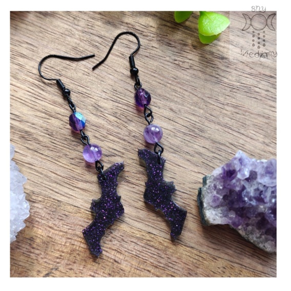 • Kolczyki Glitter Bat ametyst nietoperze Halloween żywica
