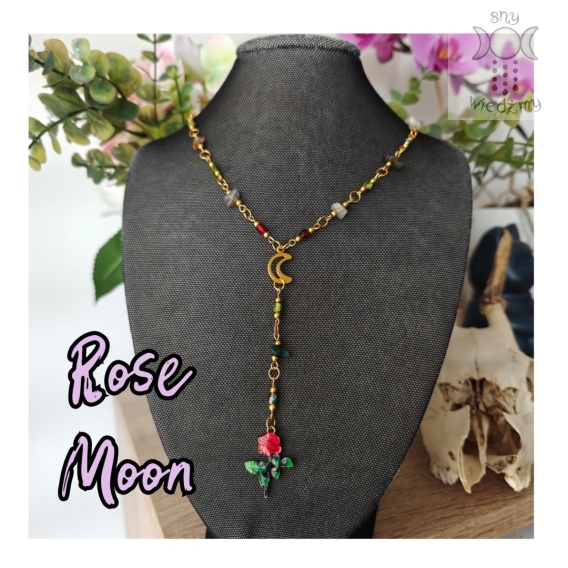 Naszyjnik Rose Moon agat indyjski księżyc róża
